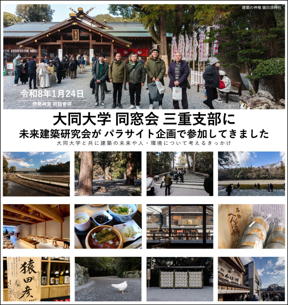 未来建築研究会では 五十鈴川沿いの てこね茶屋にてお昼ご飯 建築の神様を祀る猿田彦神社へ参拝 卒業生が撮影した おかげ横丁のスタバでひと息 外宮に戻り せんぐう館の見学 伊勢市駅前の居酒屋で夕食など 伊勢を1日 満喫してきました